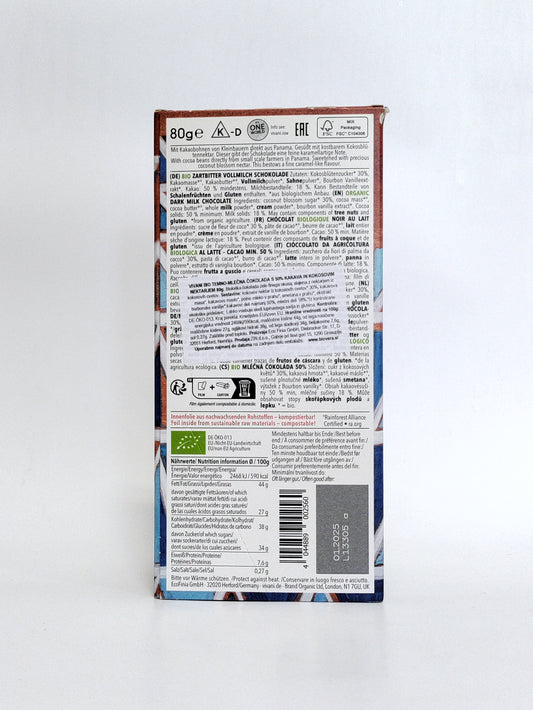 Vivani - Bio temno-mlečna čokolada s 50% kakava in kokosovim nektarjem 80g