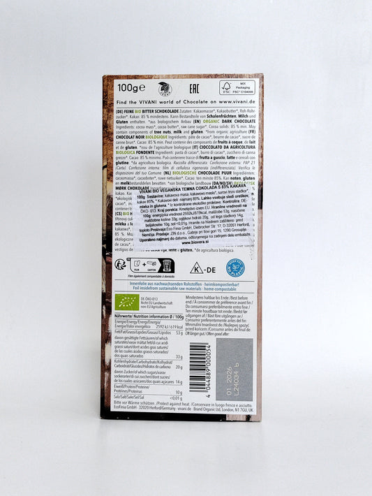 Vivani - Bio veganska temna čokolada s 85% kakava 100g