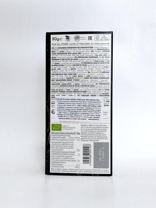 Vivani - Bio žlahtno grenka čokolada 100% kakava, 80g