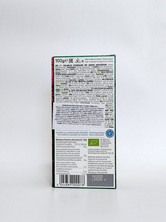 Vivani - Bio mlečna čokolada s celimi lešniki 100g