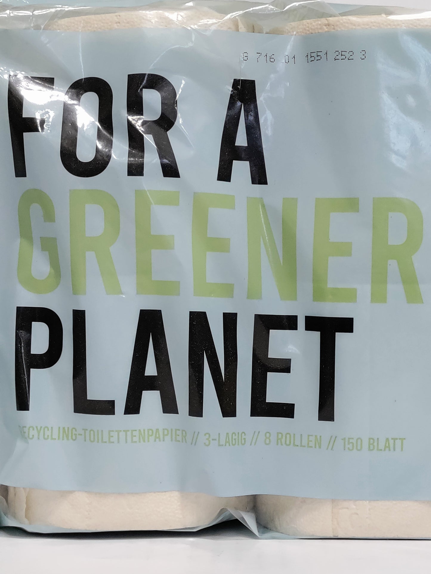 Troslojni toaletni papir iz 100% recikliranega papirja. Pri proizvodnji ne uporabljajo klorovih belil.