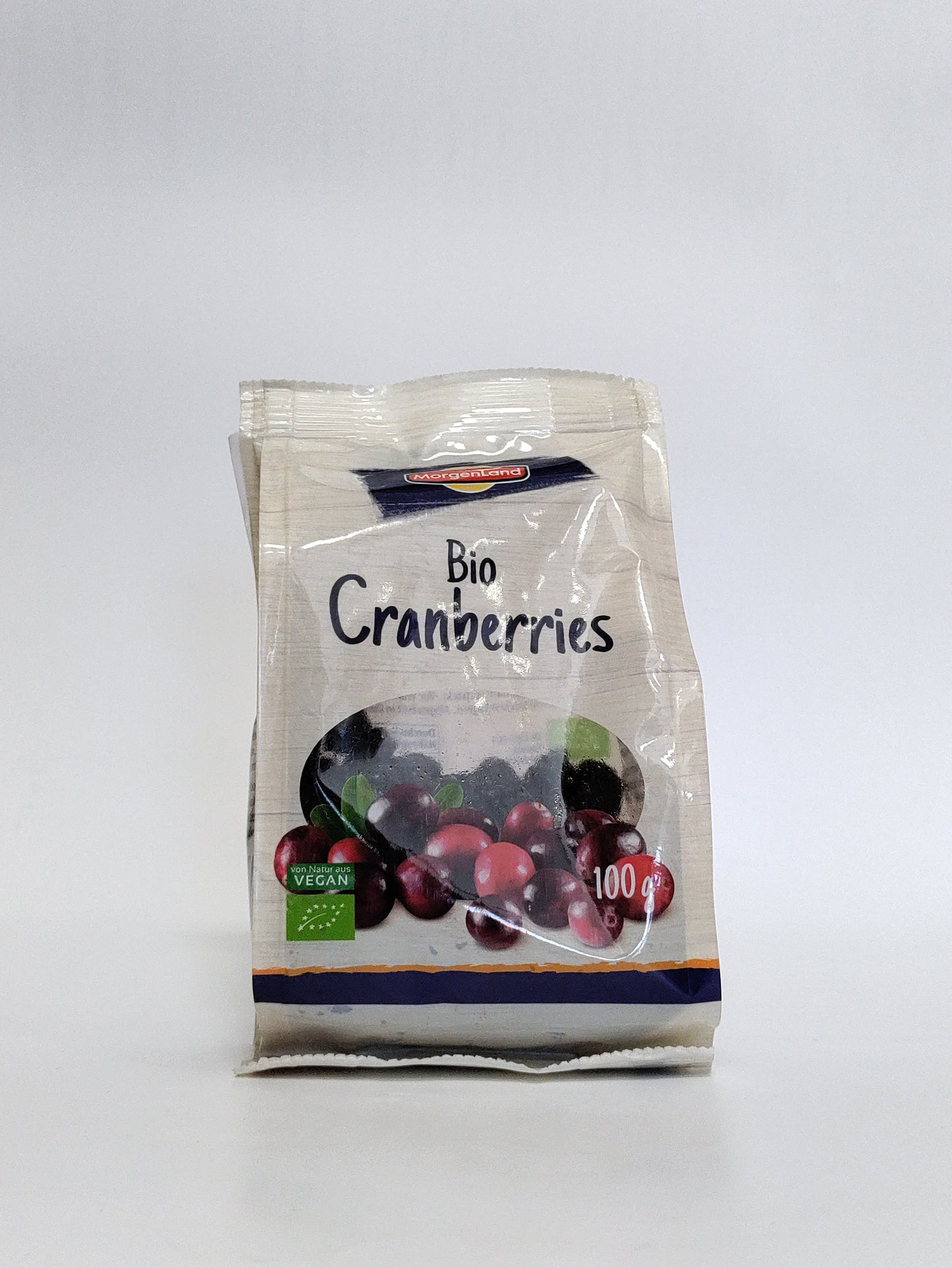 Biološke suhe in slajene brusnice. Izdelek je veganski.