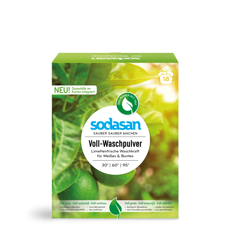 Inovativna formula s certificiranim organskim rastlinskim milom in sodo sprosti svojo čistilno moč že pri 30 stopinjah in je primerna za globinsko čiščenje vseh tekstilnih vlaken, razen volne in svile.