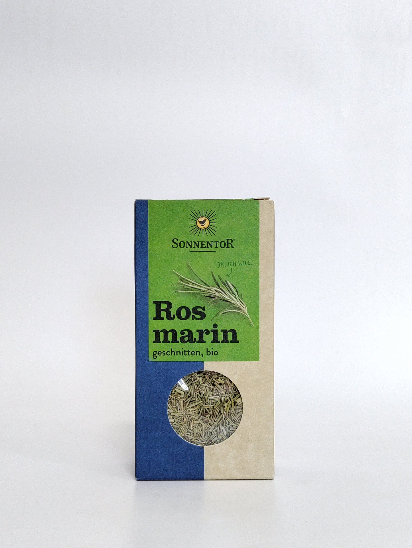 Biološki sušen in narezan rožmarin. Nepogrešljiv za mediteranske jedi, poda se k krompirju, njokom, zelenjavi, juham, enolončnicam, mesnim jedem... Dodajte ga ob začetku kuhanja, da razvije polno aromo. Hranite na hladnem in suhem mestu.