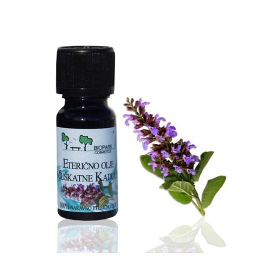 Opis in uporaba: Pridobljeno s parno destilacijo listov in cvetov muškatne kadulje. Je svetle, zlato rumene barve ter ima zemeljski, sadno – cvetlični vonj, ki spominja na oreščke in zelišča. Olje spodbuja občutke toplote, pomirja, lahko prinaša občutke veselja. Deluje lahko kot antidepresiv, priti krčem, proti neprijetnemu vonju, pomirja krvni tlak, pozitivno vpliva na živce in maternico. Določeni viri navajajo, da lahko pomaga pomirjati astmo, je pa tudi odlično za nego in čiščenje mastnega lasišča.